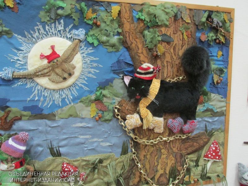 Еще в Древнем Египте кошка обожествлялась египтянами и наделялась различными мистическими способностями. На Руси пушистые и усатые слыли предсказателями погоды и событий в семье. Кошки стали героями русских сказок, вспомнить, к примеру, Кота-Баюна, говорившего человеческим голосом. Этот персонаж известный каждому школьнику на выставке занял центральное место. И еще бы, с таким пушистым хвостом его трудно оставить без внимания.