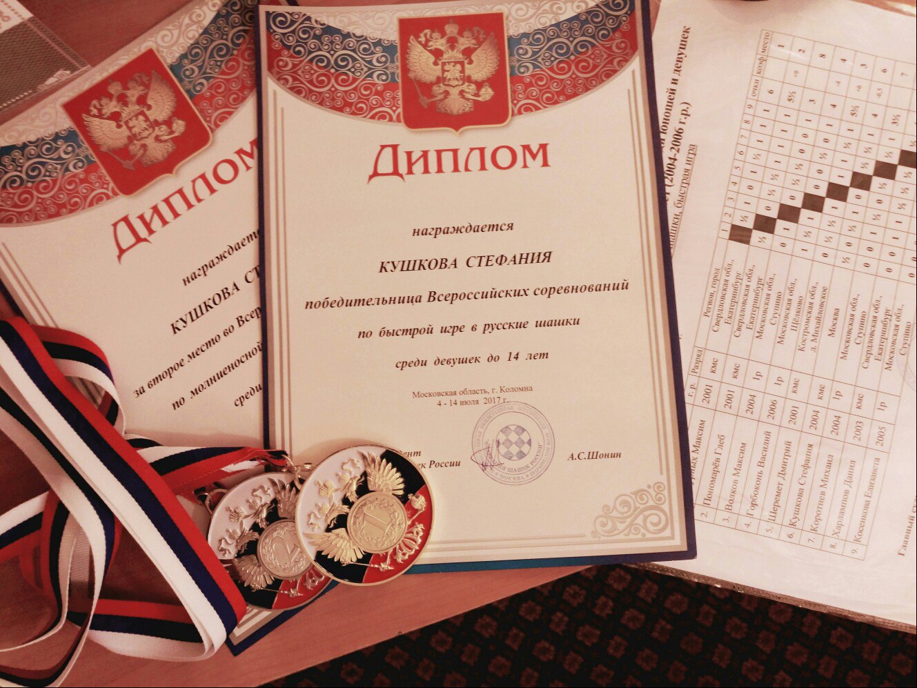 Стефания Кушкова, ученица гимназии №1579, завоевала золотую медаль на Всероссийском турнире по шашкам в Коломне.