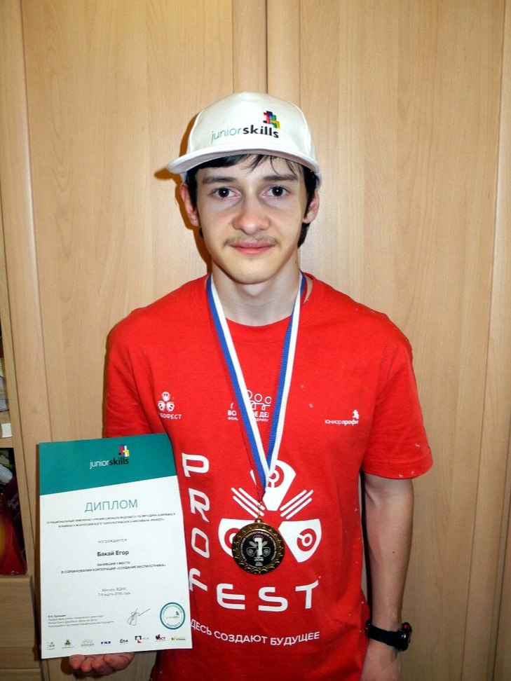 Егор Бакай участвовал в соревнованиях в составе команды кружка «Электроник» школы №904. Команда юных роботехников стала первой в «Создании беспилотника».