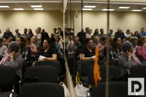 Публичные слушания вызвали большой интерес среди жителей Москворечья-Сабурова которые расположились в школьном актовом зале. Кроме того, по соседству, в спортивном зале образовательного учреждения велась прямая трансляция всего происходящего.