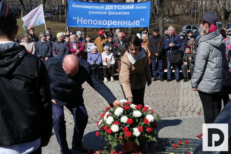 В завершение митинга Владимир Михеев и Анна Шамаева установили у памятного мемориала корзину цветов от префектуры ЮАО. После этого алые гвоздики возложили остальные участники митинга, студенты и школьники. По существующей традиции некоторые оставили здесь также мягкие игрушки в знак памяти о юных узниках, которые из-за войны так и не узнали, что такое настоящее детство.