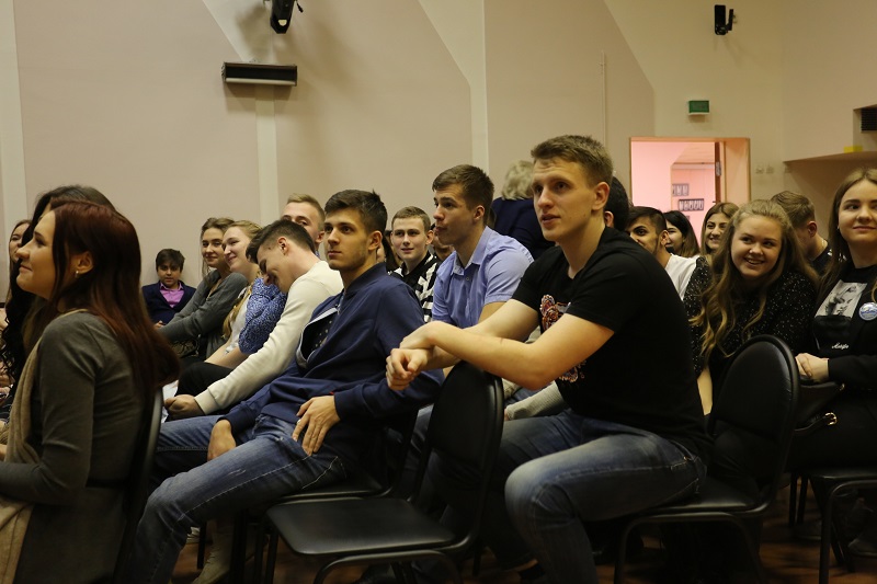 Ученики тринадцати выпусков заполнили весь актовый зал. На некоторое время гостям предложили перенестись во времена их учебы благодаря праздничной программе.