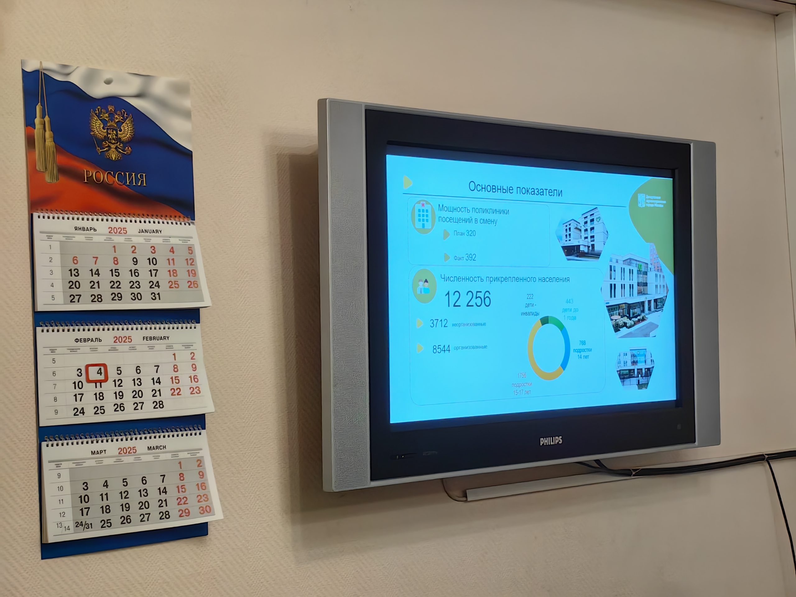 По ее словам, мощность поликлиники по плану составляет 320 посещений в смену, по факту — 392 посещения. К ней прикреплено 12 256 детей. В 2024 году фактическое количество посещений составило 193751.