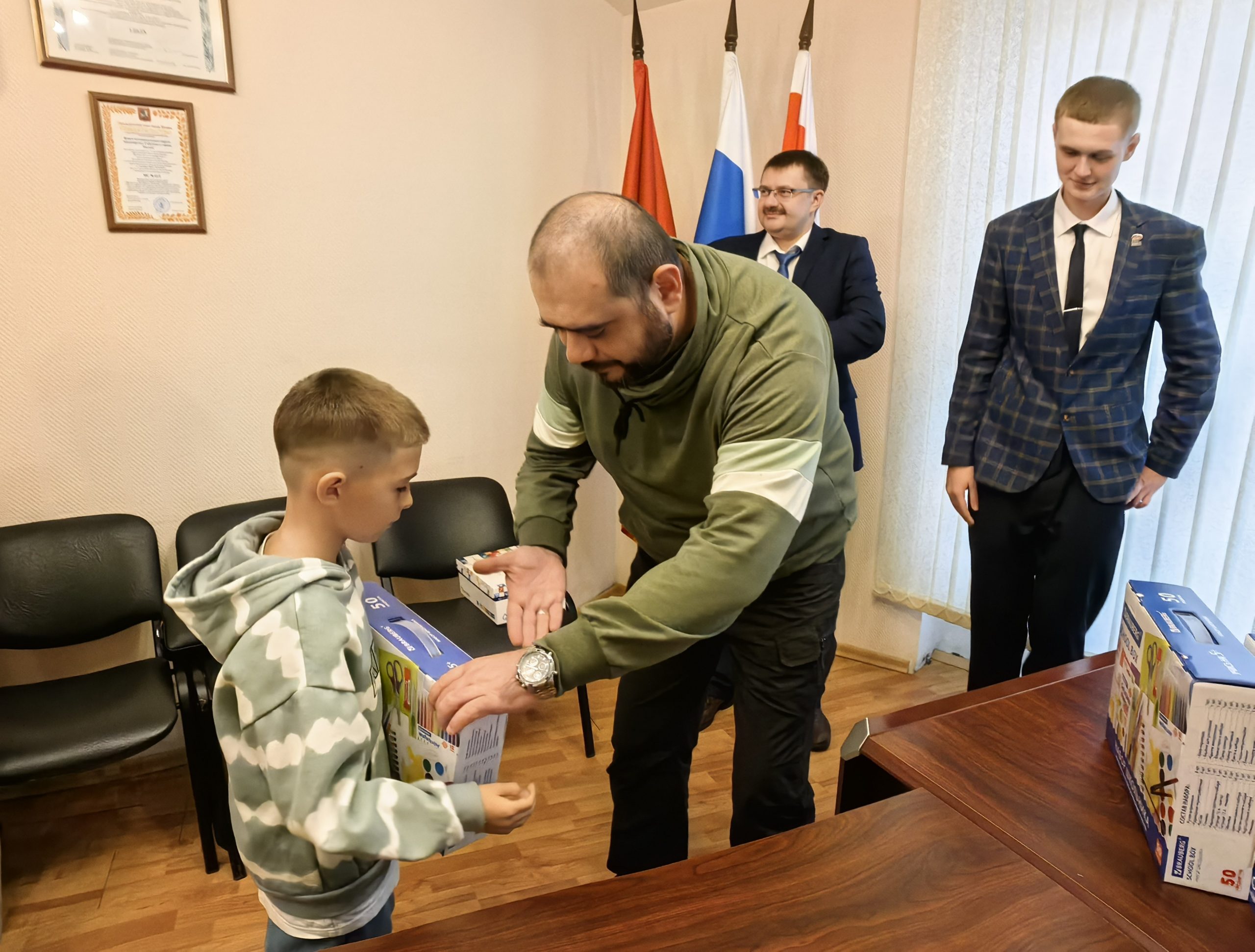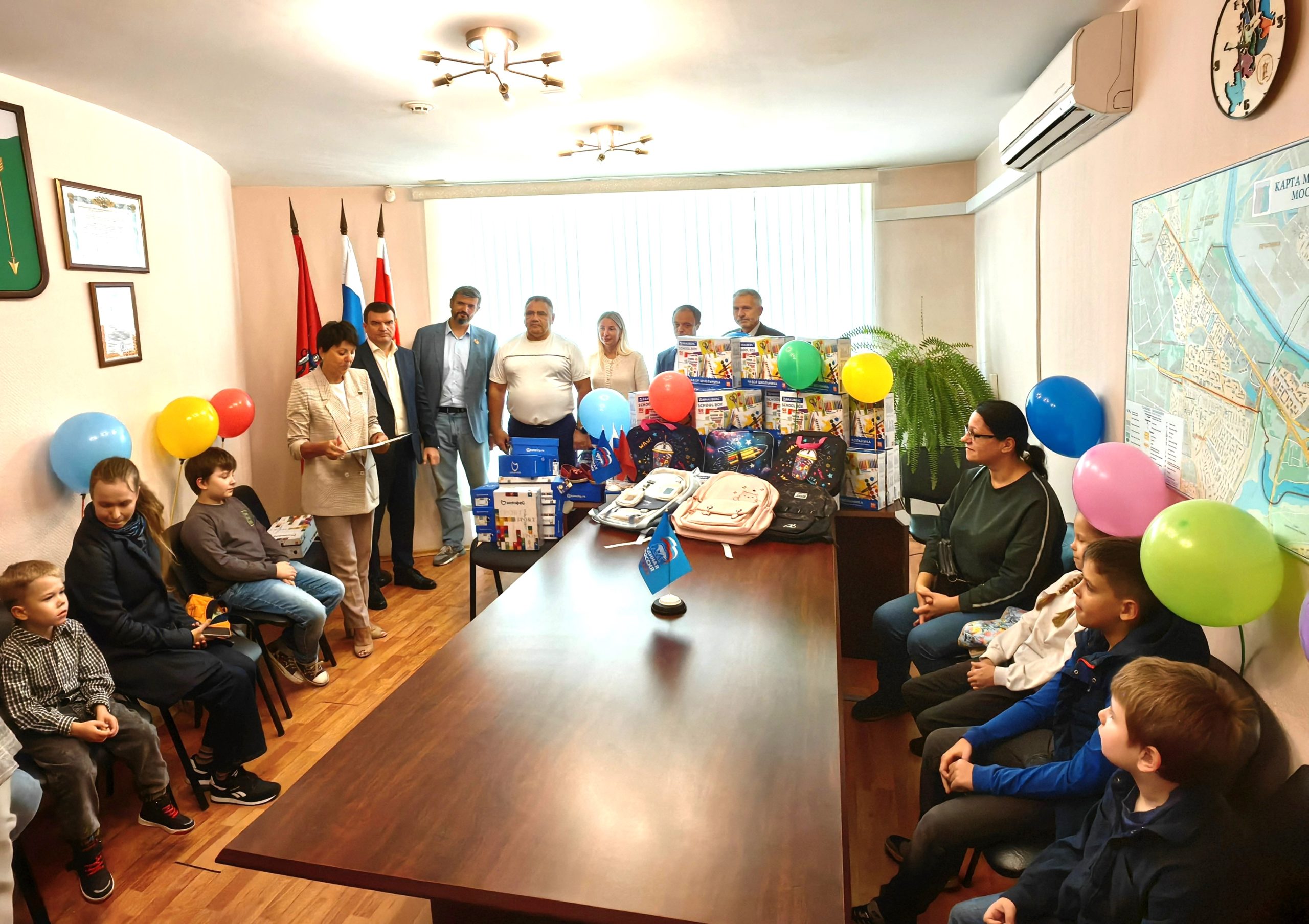 Вручение подарков детям в рамках акции «Собери ребенка в школу» прошло в помещении местного Совета депутатов 26 августа. В зале заседаний, украшенном разноцветными воздушными шариками, собрались дети, родители и участники акции. Ребята были из многодетных, малообеспеченных семей, а также из семей участников СВО. Активисты района Москворечье-Сабурово объединились, чтобы помочь ребятам подготовиться к новому учебному году.