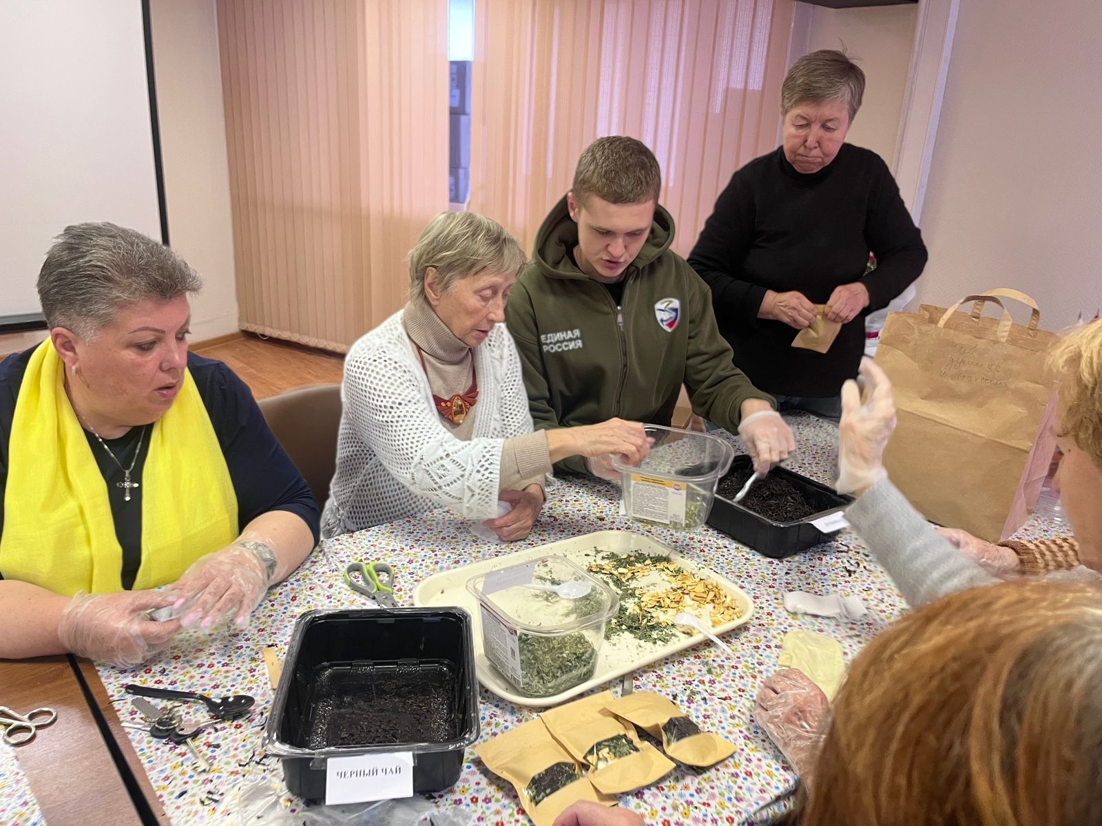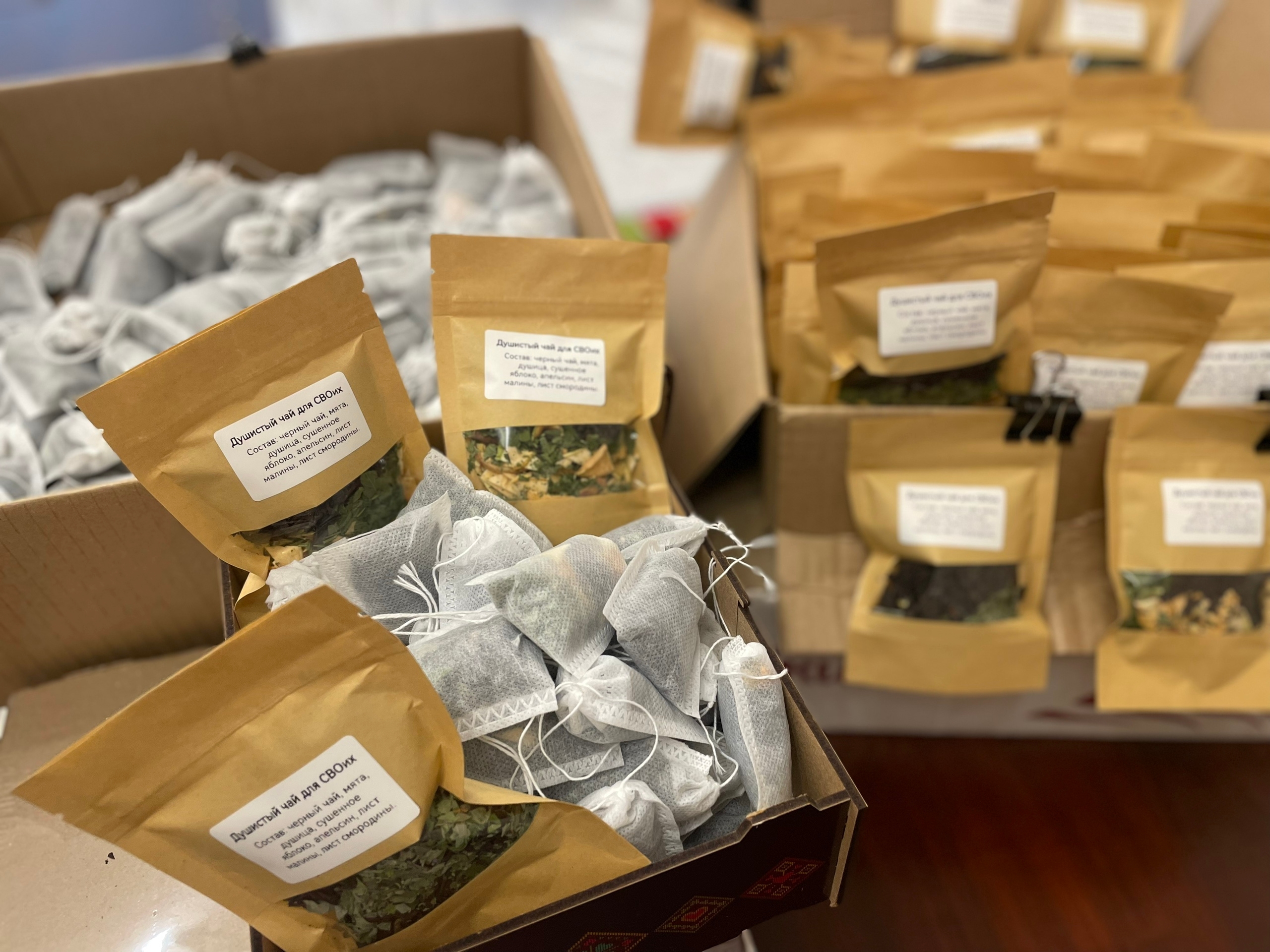 Волонтерская акция «Душистый чай для СВОих» прошла в муниципальном округе Москворечье-Сабурово 30 октября. В ней приняли участие депутаты, активисты Совета ветеранов района и другие неравнодушные жители. Среди них были глава муниципального округа Москворечье-Сабурово Наталья Заусаева, депутат Московской городской Думы Александр Лиханов и исполнительный секретарь местного отделения партии «Единая Россия» в районе Москворечье-Сабурово Егор Горшков.