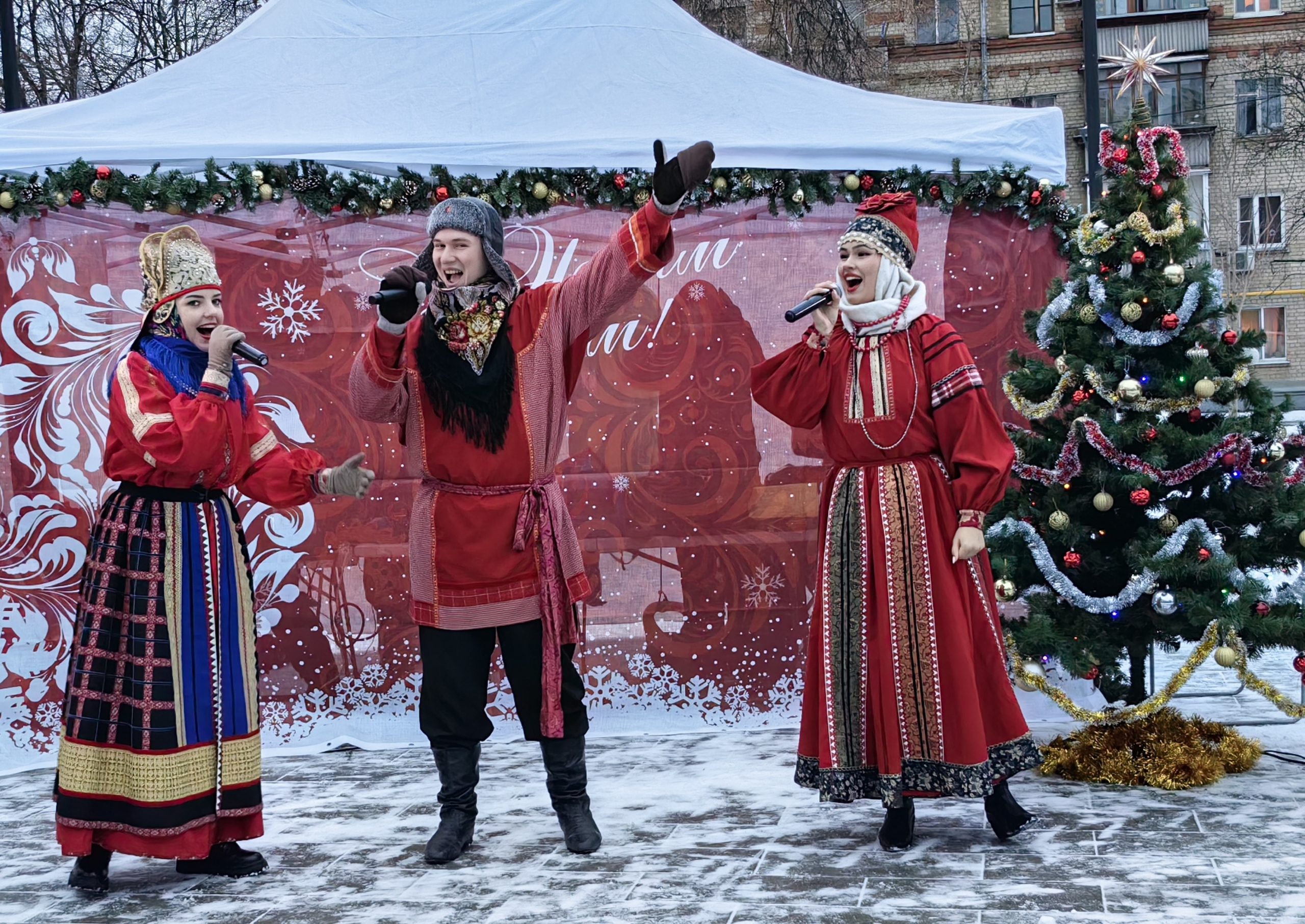 Праздничная программа была яркой и насыщенной. Главными фигурами торжества конечно же стали дед Мороз и Снегурочка, с которыми гости весело водили хоровод. Импульса празднику придали выступления солистов популярного вокального ансамбля, фольклорной группы «Славяне» Театра «Русская песня» под руководством народной артистки России Надежды Бабкиной. У детей особый восторг вызвали фокусы лауреатов международных конкурсов, артистов цирка Людмилы и Вячеслава Мишиных. С помощью волшебных манипуляций они увидели, как в пустой коробке появился живой, белый пушистый кролик. А затем все зрители дружно подпевали зажигательному трио фольклорного ансамбля «Диковина».